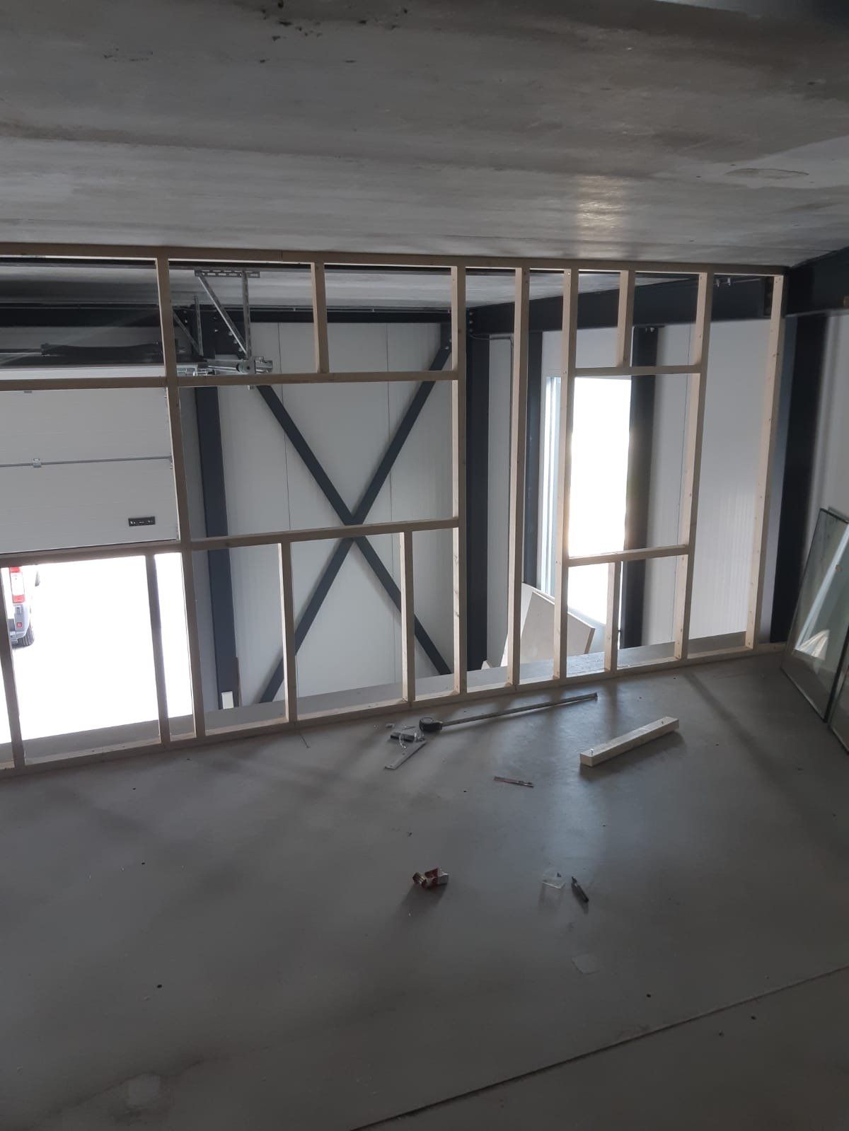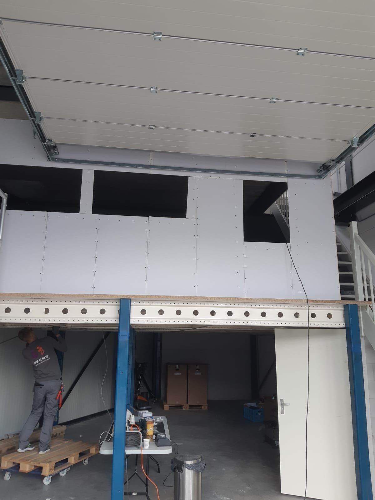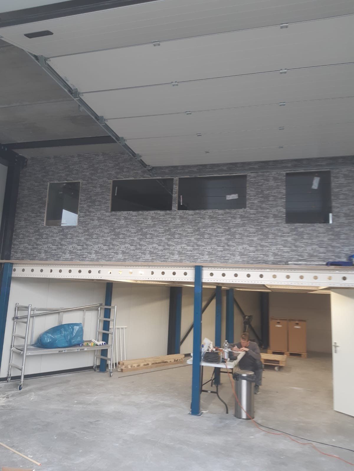 Om extra ruimte in zijn bedrijfshal te krijgen ben ik door de opdrachtgever benaderd om een entresol te plaatsen in zijn bedrijfshal. We hebben op deze manier een extra oppervlakte van circa 25 M2 gecreëerd waar kantoor ruimtes zijn gerealiseerd. De buitenzijde van de kantoren is afgewerkt met steenstrips.