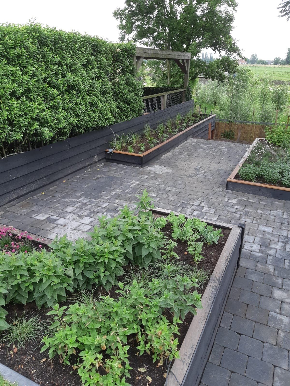 De opdrachtgever had de wens om een mooie siertuin te realiseren met plantenbakken waarbij het uitzicht naar het weiland geïntegreerd werd. Zo zijn we tot een mooi ontwerp gekomen en heeft de tuin een volledig nieuw gezicht gekregen