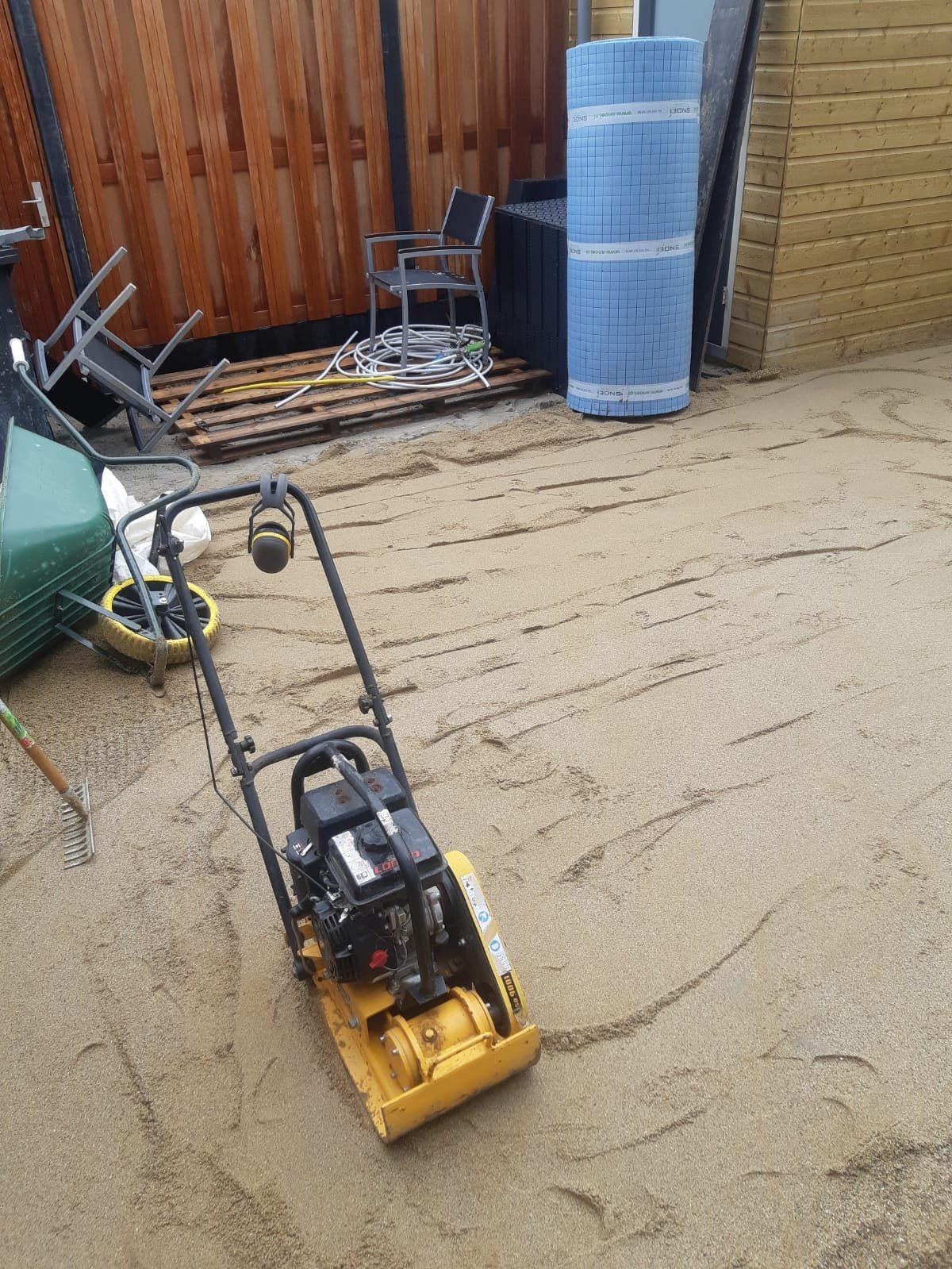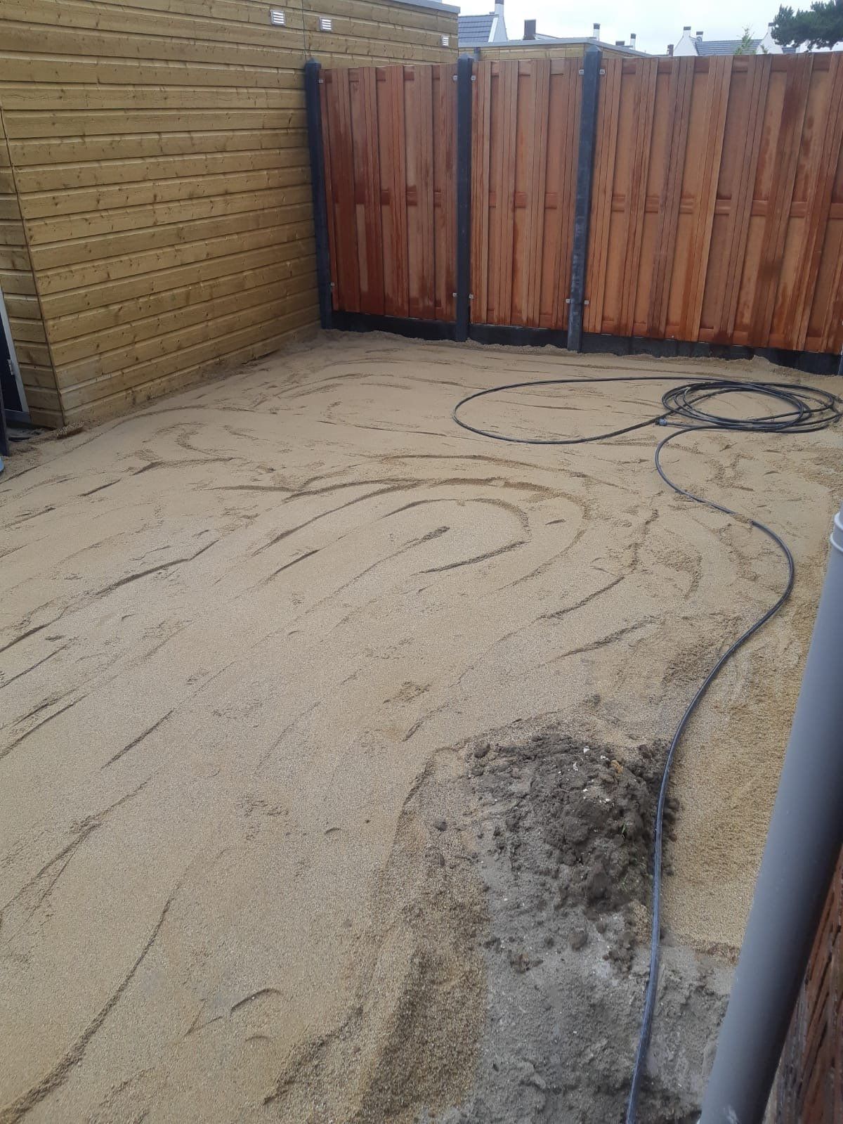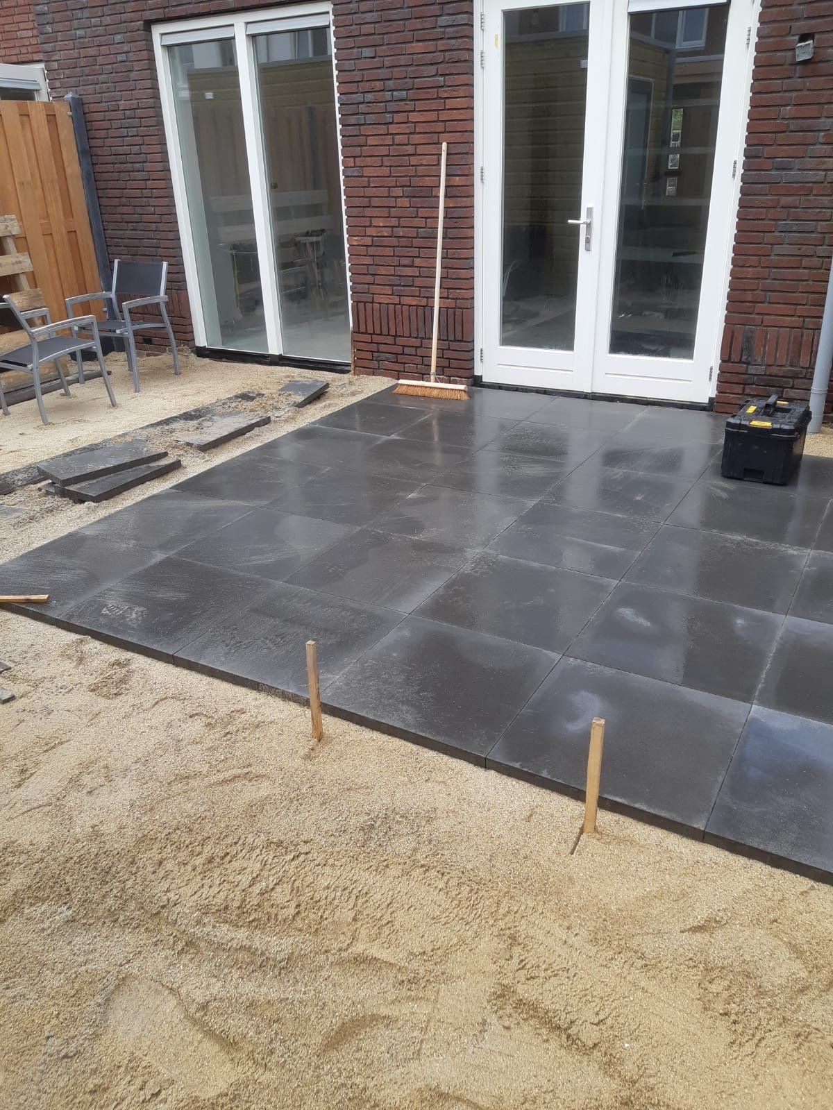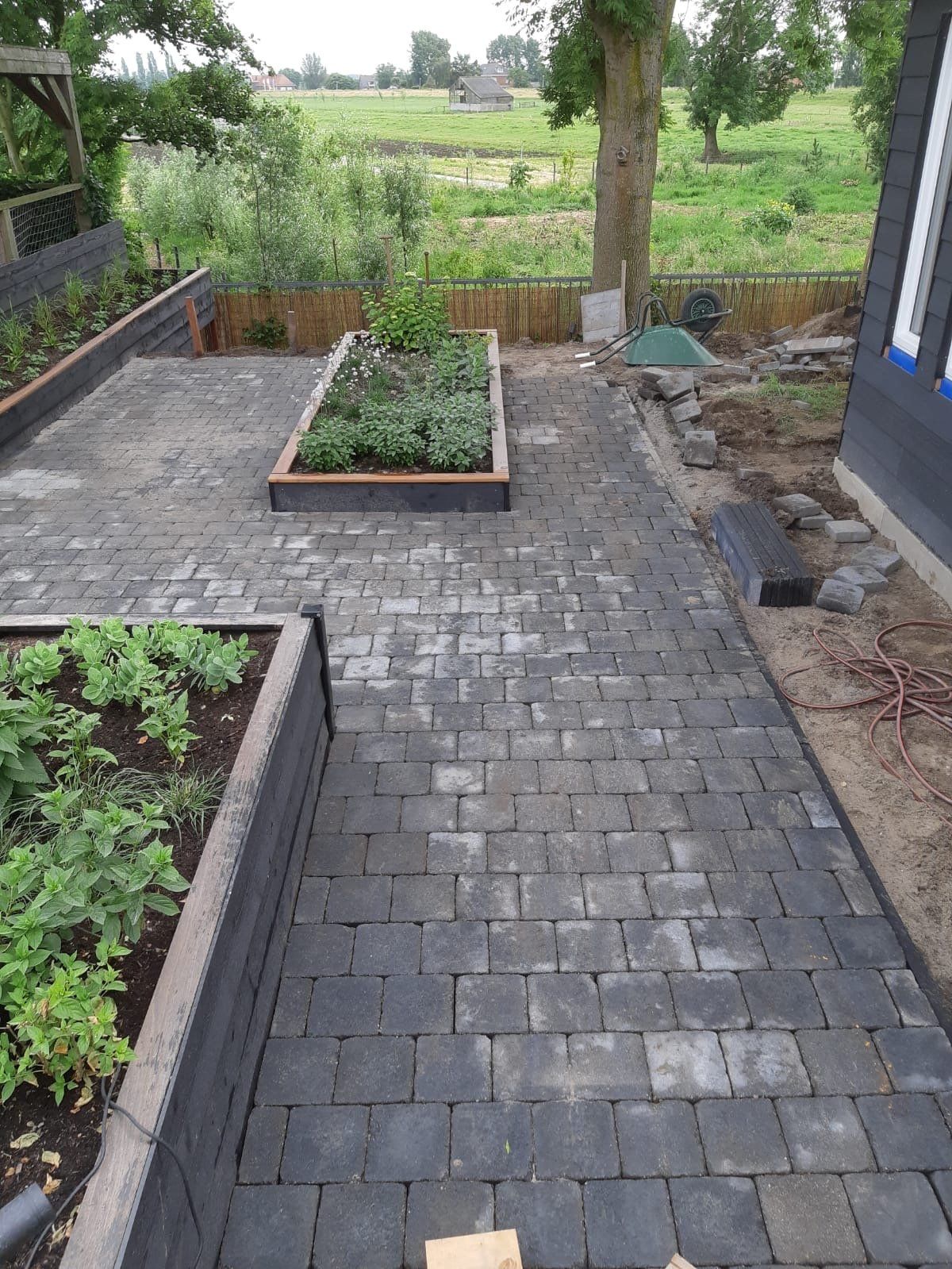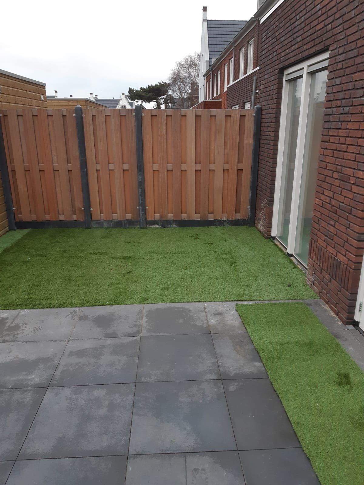 De opdrachtgever zag een tuin voor zich waar hij weinig onderhoud aan had en het hele jaar door van kon genieten. In overleg met de klant heb ik de nieuwe tuin voorzien van een terras vloer en gras stroken.